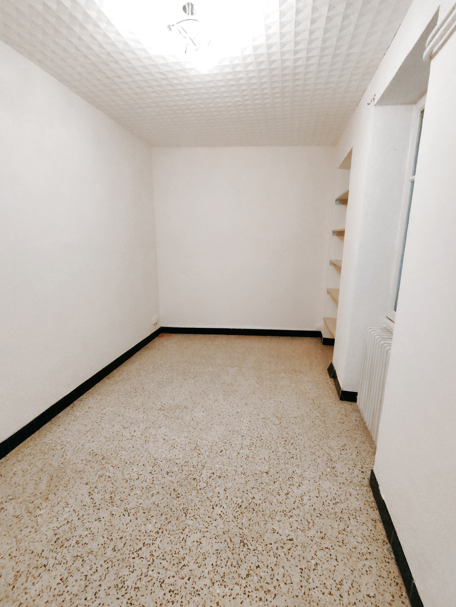 Il se compose d’une entrée/dégagement desservant une cuisine, un séjour, un bureau, une salle d’eau avec WC, ainsi qu’une chambre .