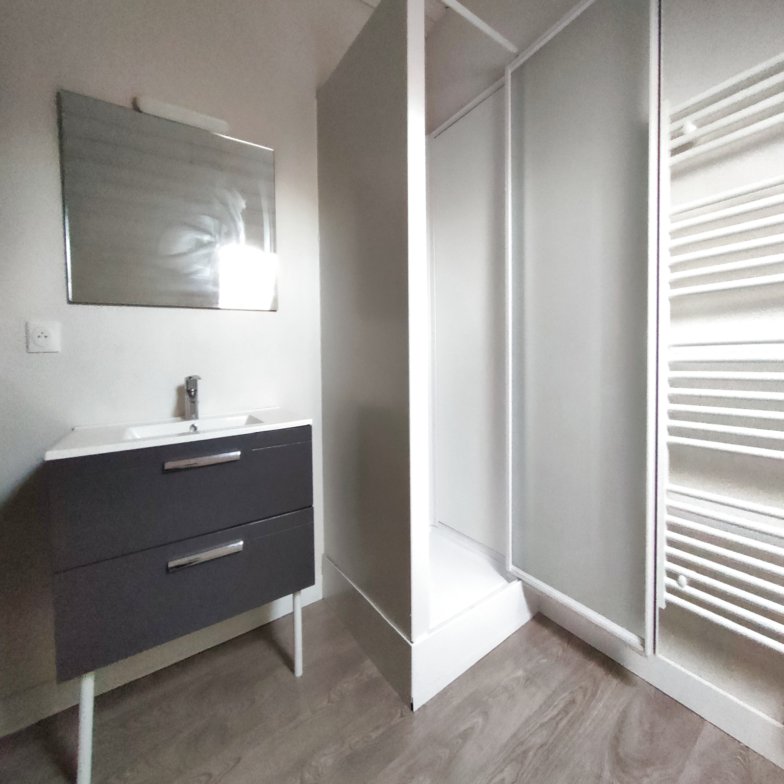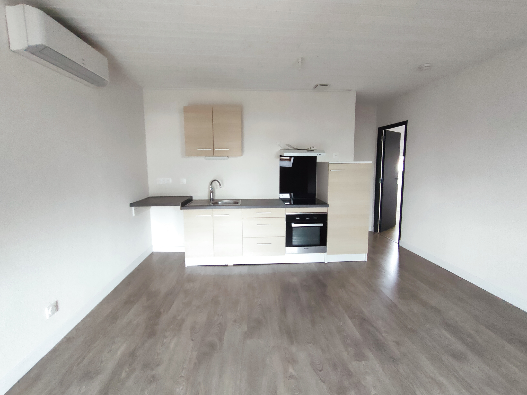 Appartement F2 de 40 m2 au 2ème étage composé : cuisine ouverte sur la pièce à vivre, 1 chambre et salle d'eau et W.C.